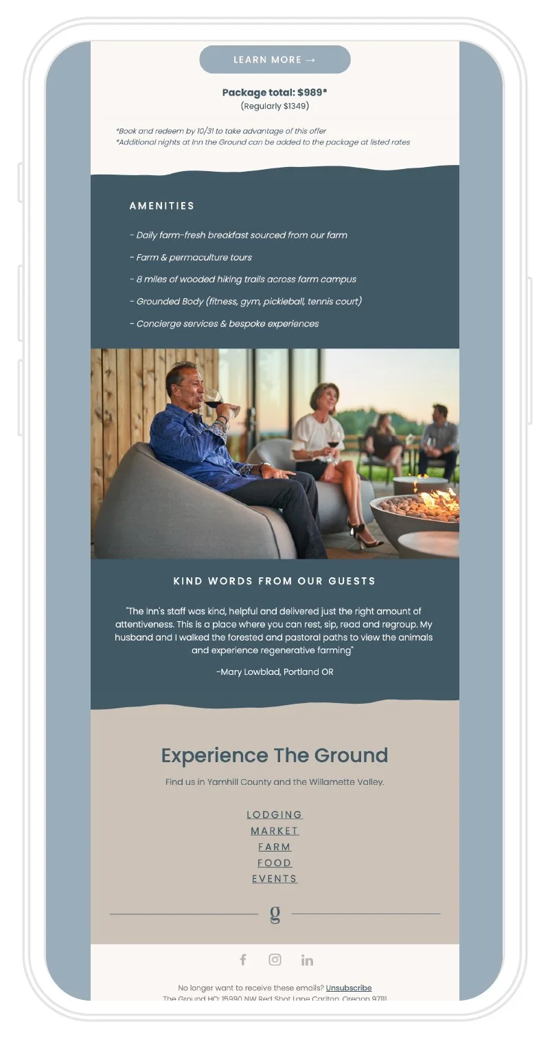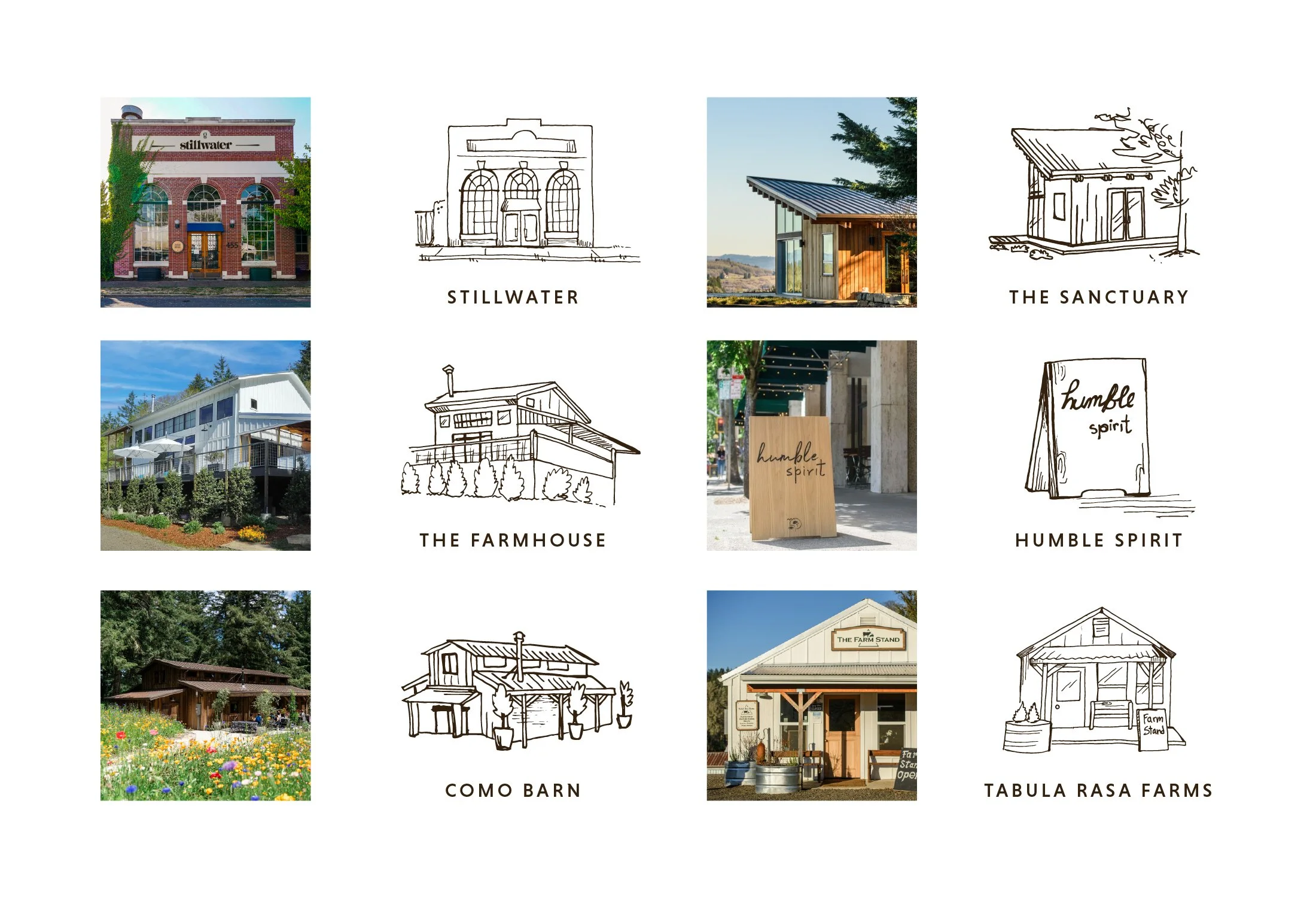 Results: The Ground is constantly evolving as it takes on new projects and experiences. The Ground’s hotel, aptly named "Inn the Ground”, has gained international attention for its unique model paired with its serene branding. Oregon Winecountry, home of The Ground ecosystem, has blown onto the world stage. The illustration library interacts with this region’s many visitors and residents at numerous touchpoints and provides a strong sense of pride for this beautiful place.